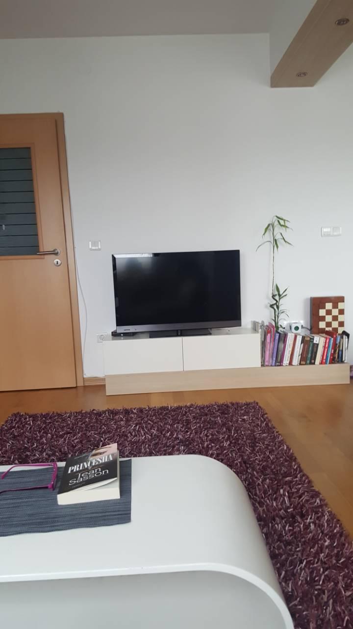 - Hapësira – sallon me kuzhinë, dhomë gjumi, shpajz, banjo, ballkon, korridor