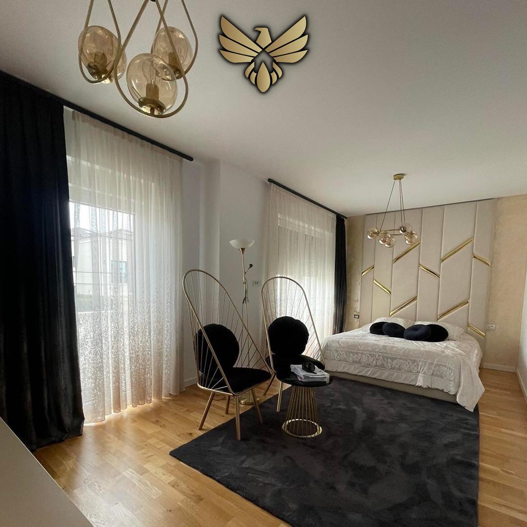 - Mobilim luksoz: Shtëpia është tërësisht e mobiluar me mobile luksoze