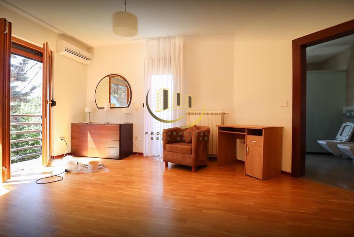 Shtëpi moderne me sipërfaqe prej 575m², 2 kate banimi, e pajisur me kamera sigurie dhe sistem alarmi, me kushte të shkëlqyera banimi dhe tërësisht e mobiluar.