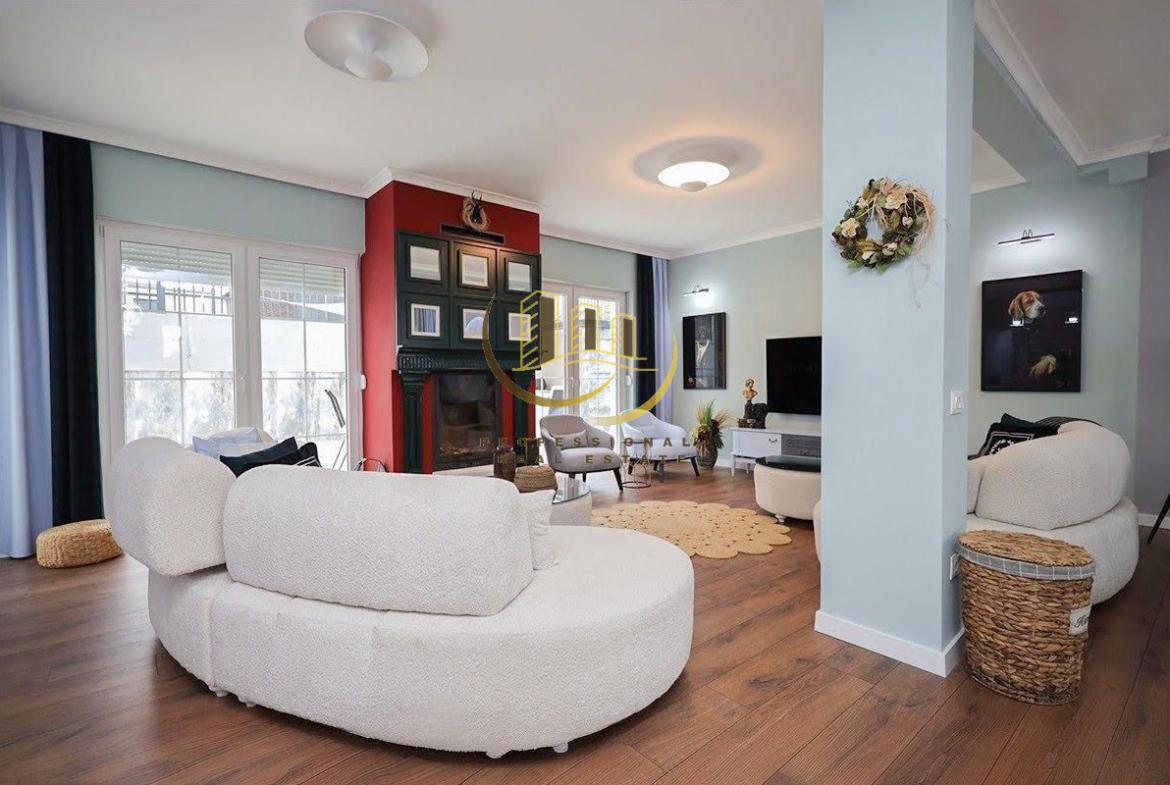 Shtëpi moderne me sipërfaqe prej 350m², 2 kate banimi, tërësisht e mobiluar dhe me kushte të shkëlqyera jetese. Ka sistem sigurie, ngrohje qendrore/klimë dhe pishinë.