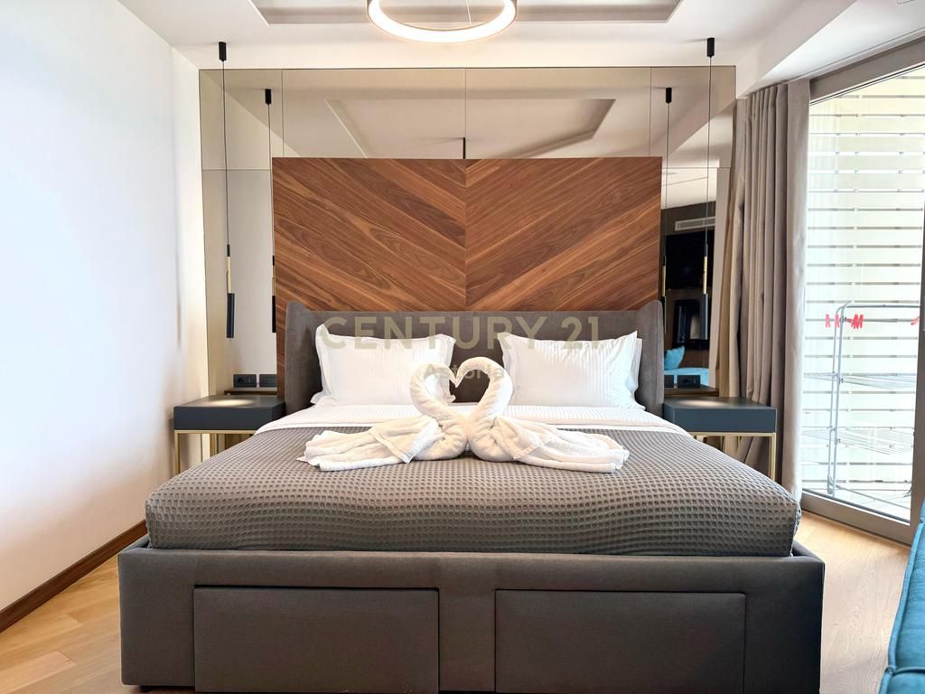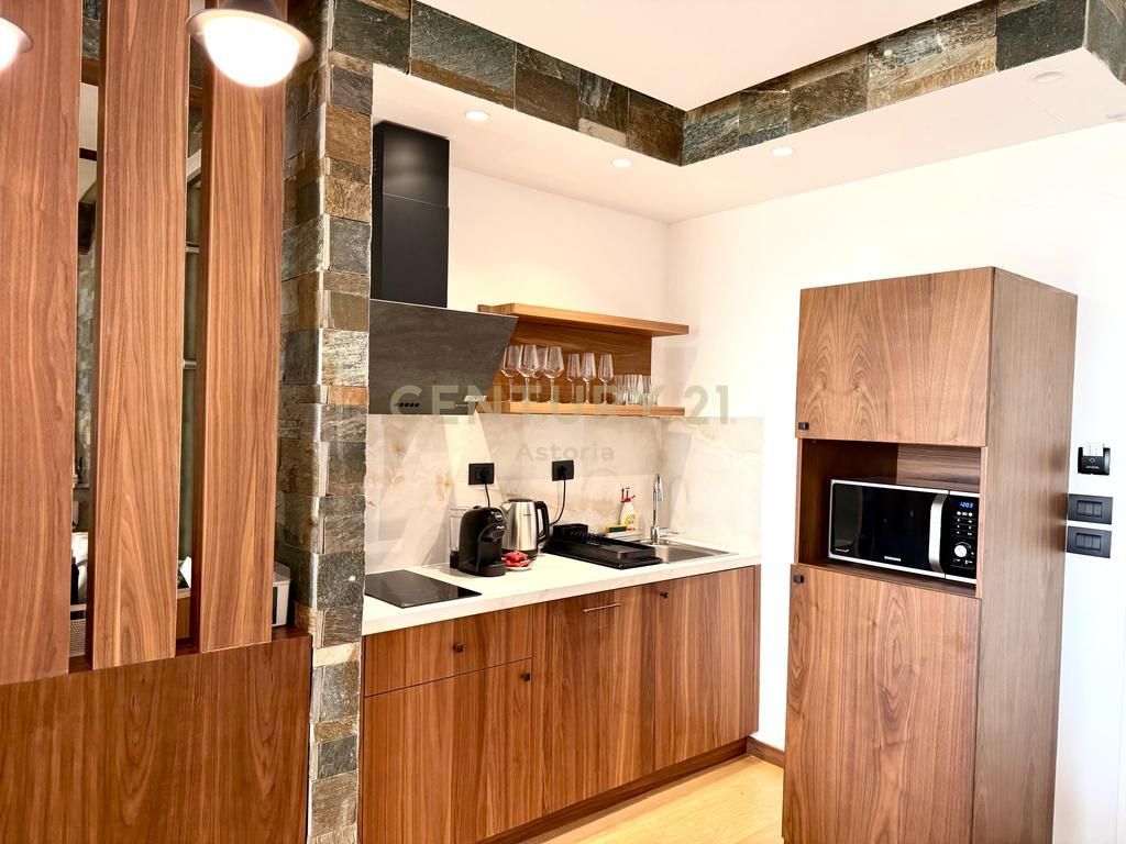 • Kuzhinë elegante e kompletuar me pajisje moderne (pianurë, furrë, mikrovalë, makinë kafeje).