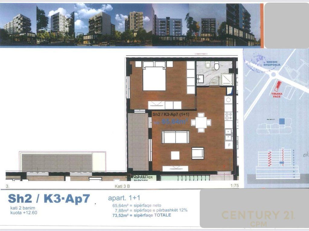 • Sipërfaqe bruto: 73.52 m²