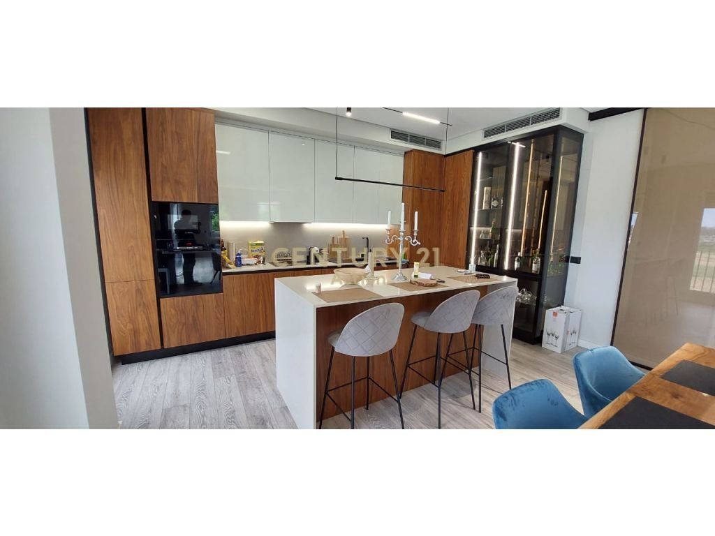 - Sallon ndenje me kuzhinë gatimi me ishull dhe kënd ngrënieje, oxhak funksional