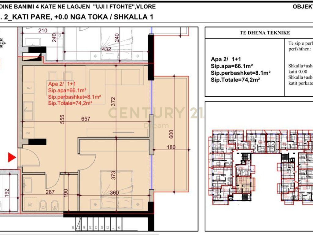 Kati: 4, Sipërfaqe Bruto: 66.1 m², Sipërfaqe Neto: 74.2 m²
