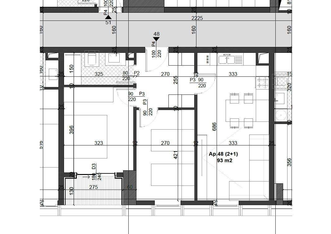 • Organizim: 1 sallon i hapur, 2 dhoma gjumi, 1 tualet dhe 1 ballkon