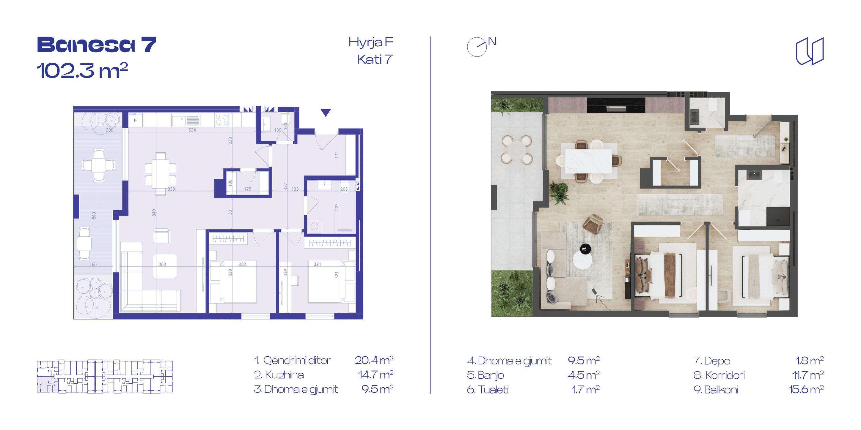 Banesa 7, Hyrja F, Kati 7, 102.3m2