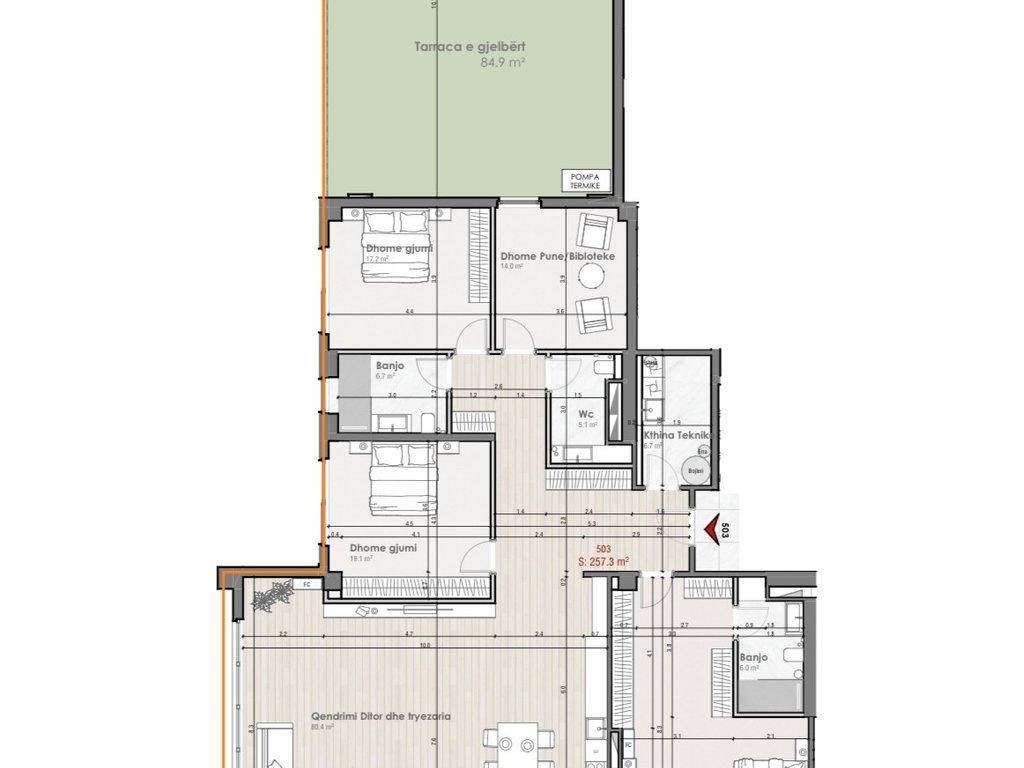 - Sipërfaqe e brendshme: 257.3 m²