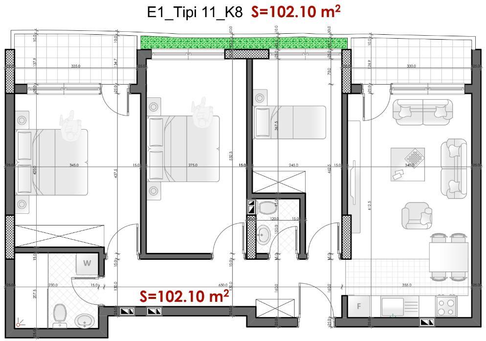 Kjo banesë moderne dhe komode është ideale për familjet që kërkojnë hapësirë dhe rehati. Sipërfaqe totale: 102.5 m²