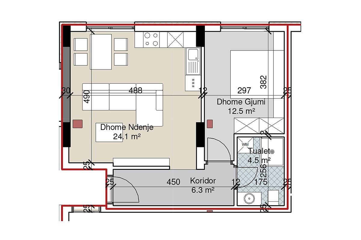 - Infrastrukturë moderne me zona të gjelbëruara, rrugë të brendshme të sistemuara dhe vendparkime të mjaftueshme