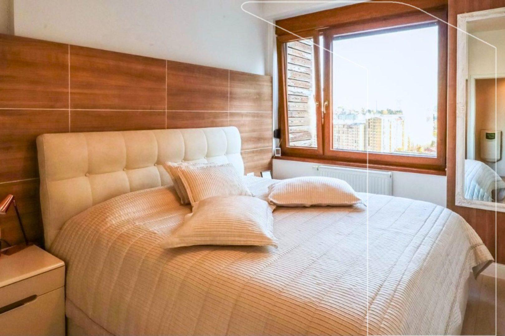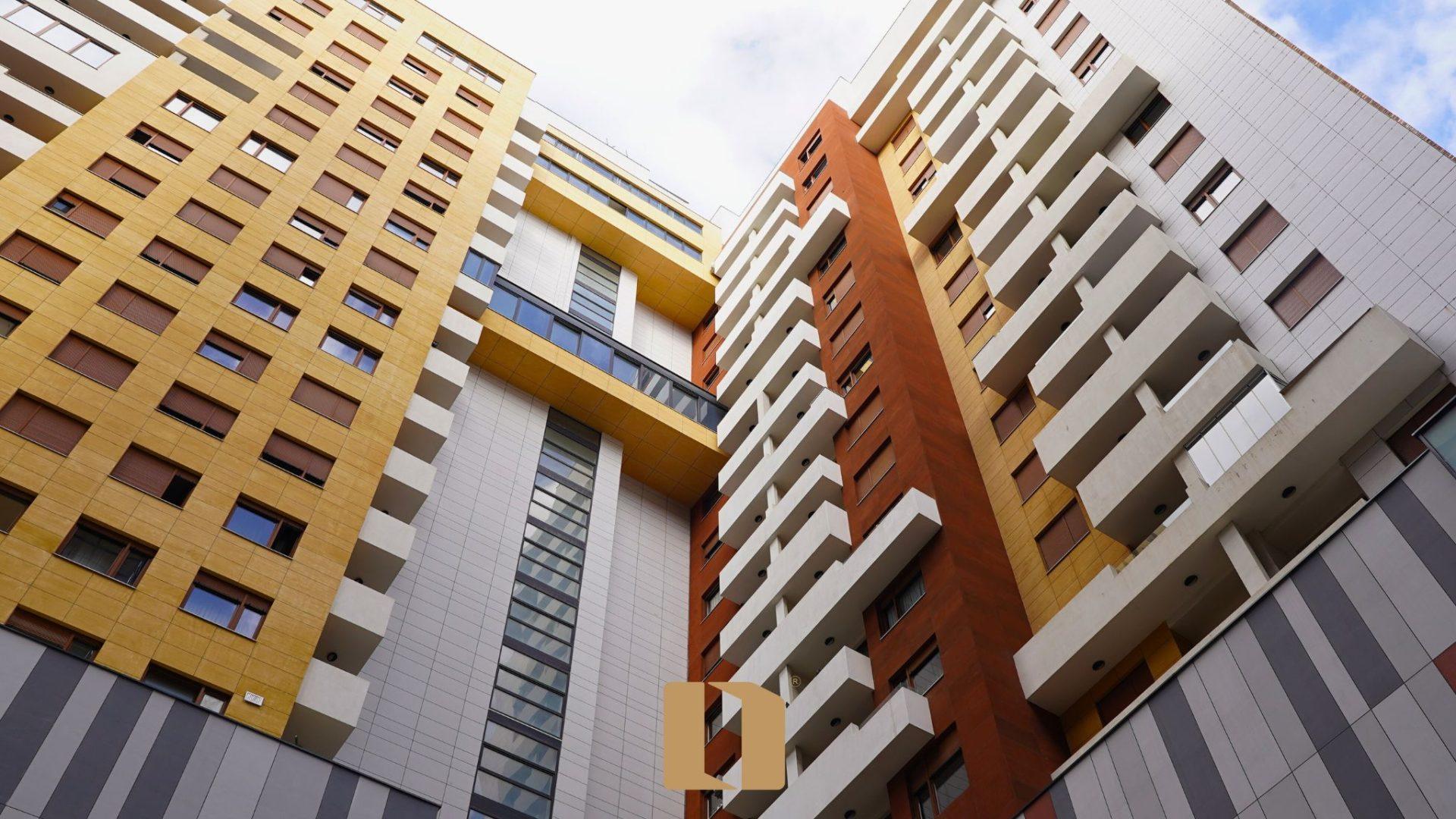 Banesë moderne me 2 dhoma gjumi, dhomë dite me kuzhinë, 1 banjo + 1 WC dhe ballkon, e pozicionuar në zemër të distriktit financiar të Prishtinës. Orientimi: 70% Lindje, pjesa tjetër Jugperëndim – ndriçim natyral gjatë gjithë ditës