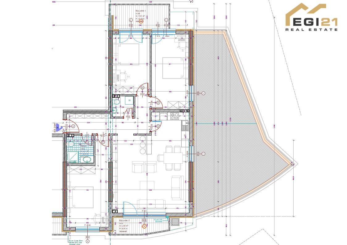 - 2 ballkona & 1 terasë (58m2) – ambiente të jashtme për relaksim