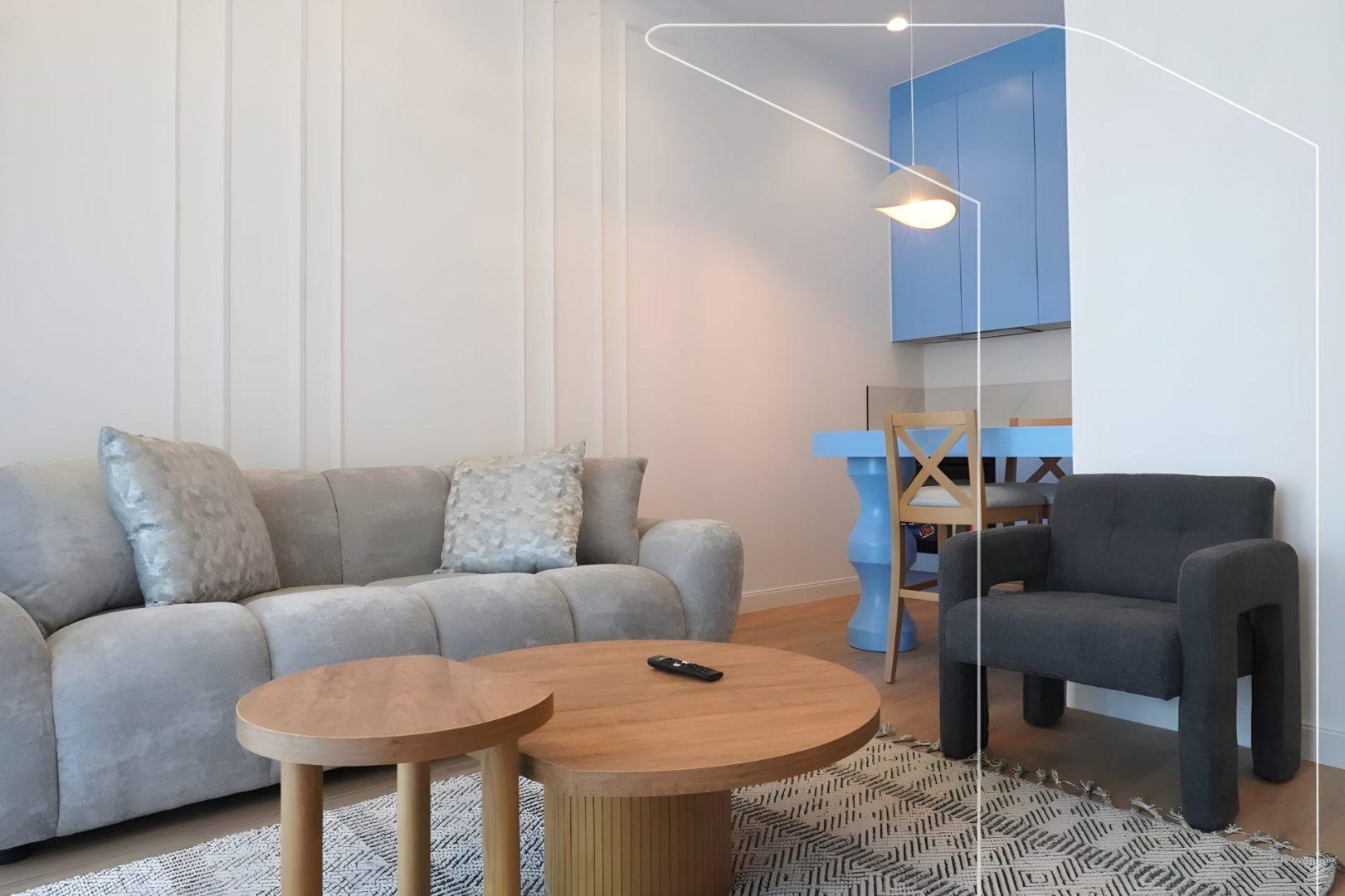 • Sallon i ndriquar me kuzhinë të hapur (open space) – ambient i ngrohtë dhe funksional
