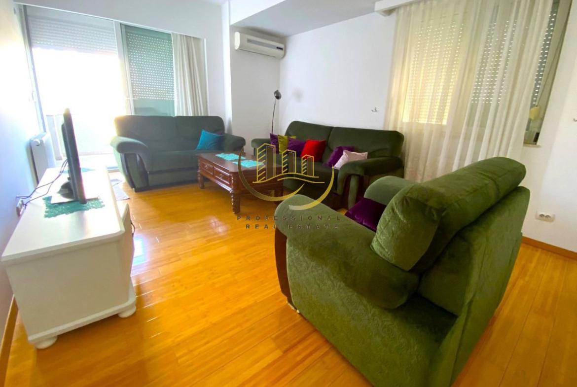 Banesë moderne me 100m2, kati i 6-të me lift, kushte shumë të mira banimi dhe nxemje qendrore me termokos. Mobiluar plotësisht, me klimë dhe renditje funksionale.
