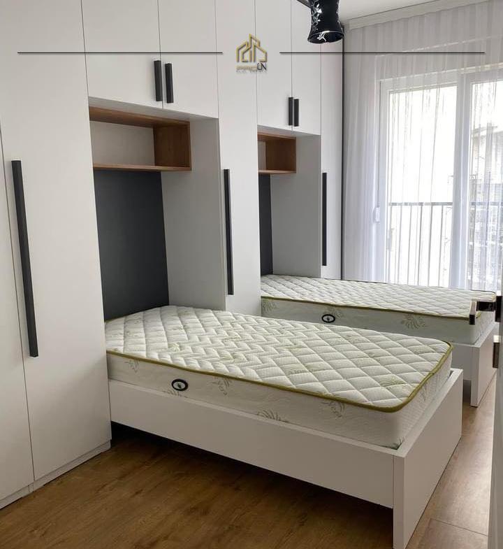 Renditja: sallon-kuzhinë, dy dhoma gjumi, koridor, dy banjo dhe ballkon.