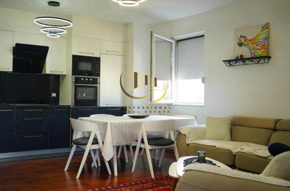 Banesë 80m2 në katin e 9-të me lift, ngrohje qendrore dhe kushte të mira banimi, tërësisht e mobiluar.