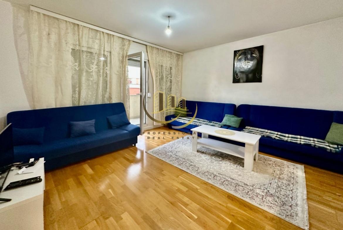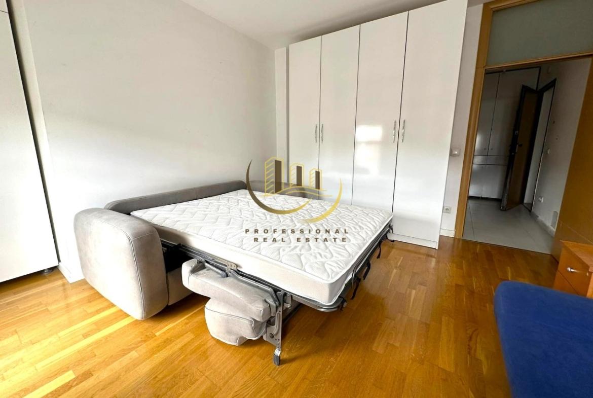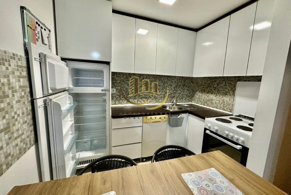 Banesë me kushte shumë të mira banimi, e mobiluar në tërësi, në katin e 6-të me lift dhe ngrohje qendrore me termokos. 66 m2, kati 6, ngrohje qendrore