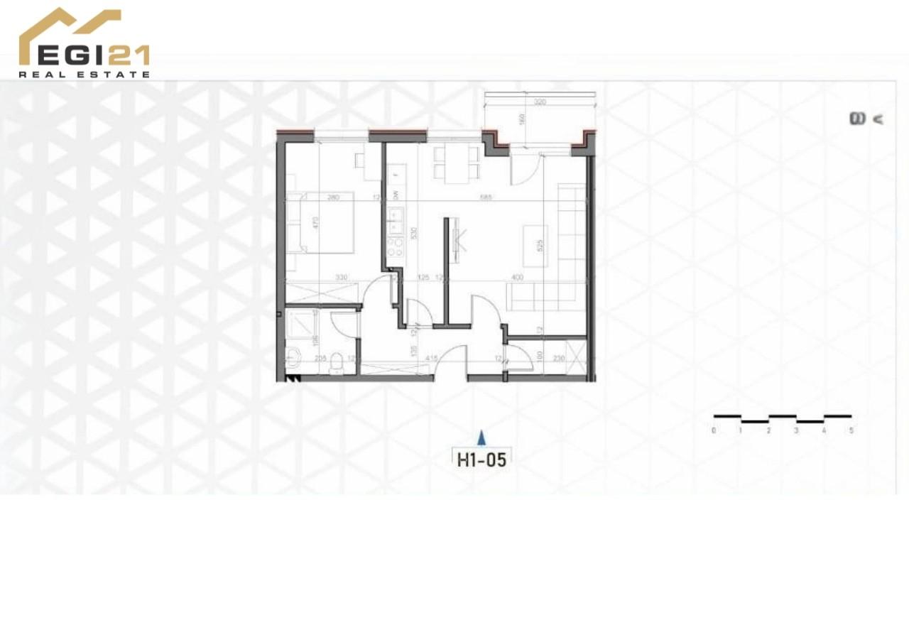 Kjo banesë është e orientuar nga perëndimi dhe ofron një pamje të mrekullueshme në horizont. 69.57 m²
