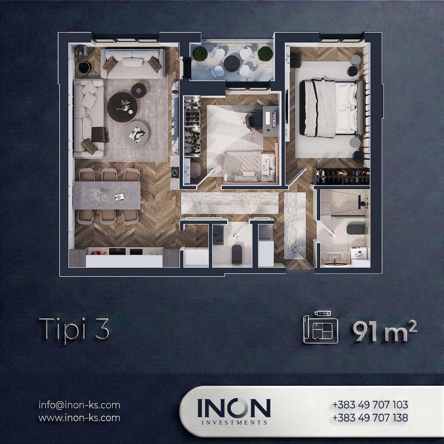 Kompleksi INON 3, zhvilluar nga INON Investments, përfaqëson një standard të lartë të banimit modern, duke kombinuar funksionalitetin, sigurinë dhe arkitekturën elegante.