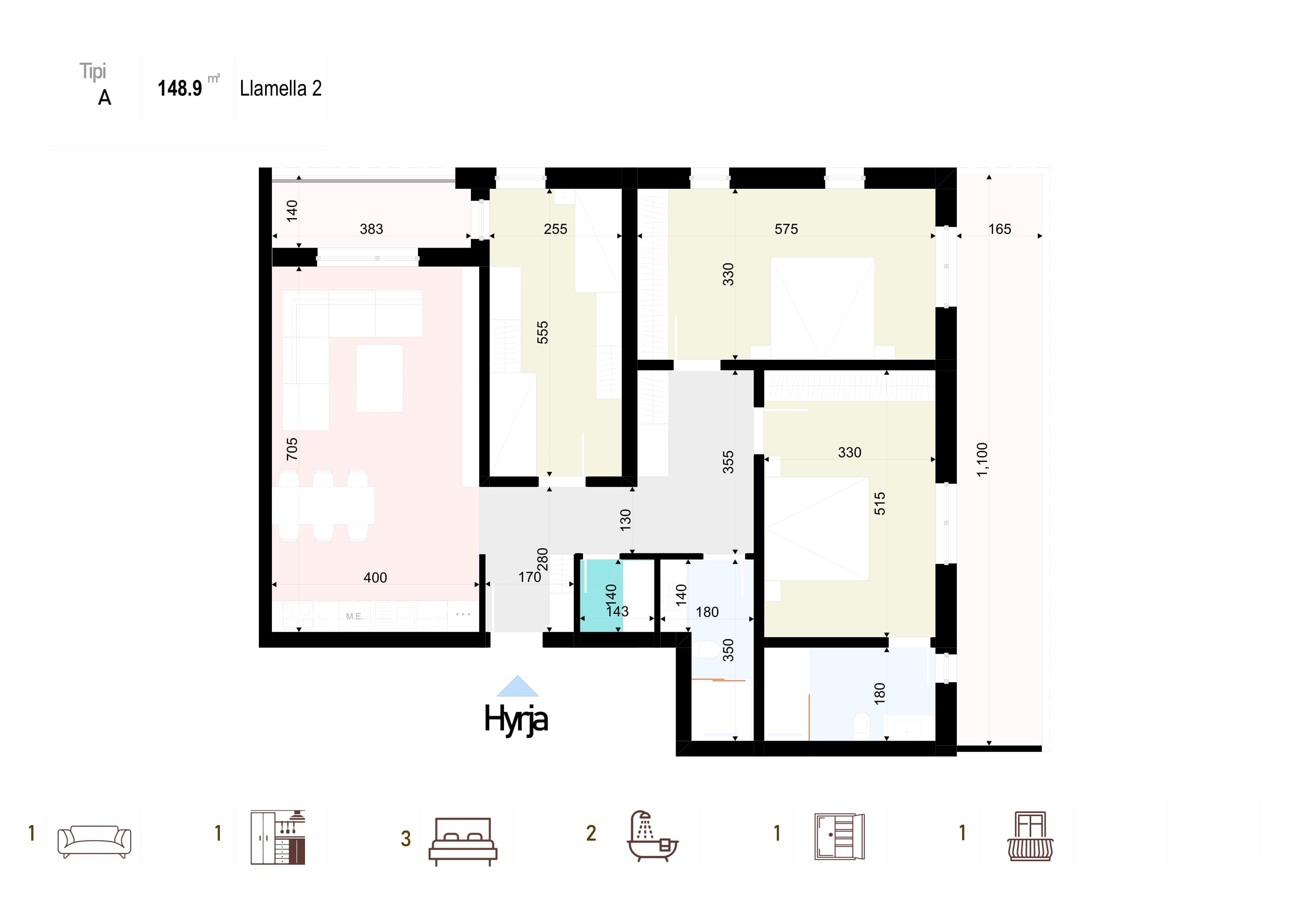 Banesë në shitje, Lamela 2, V2, Tip A, 148.90m2