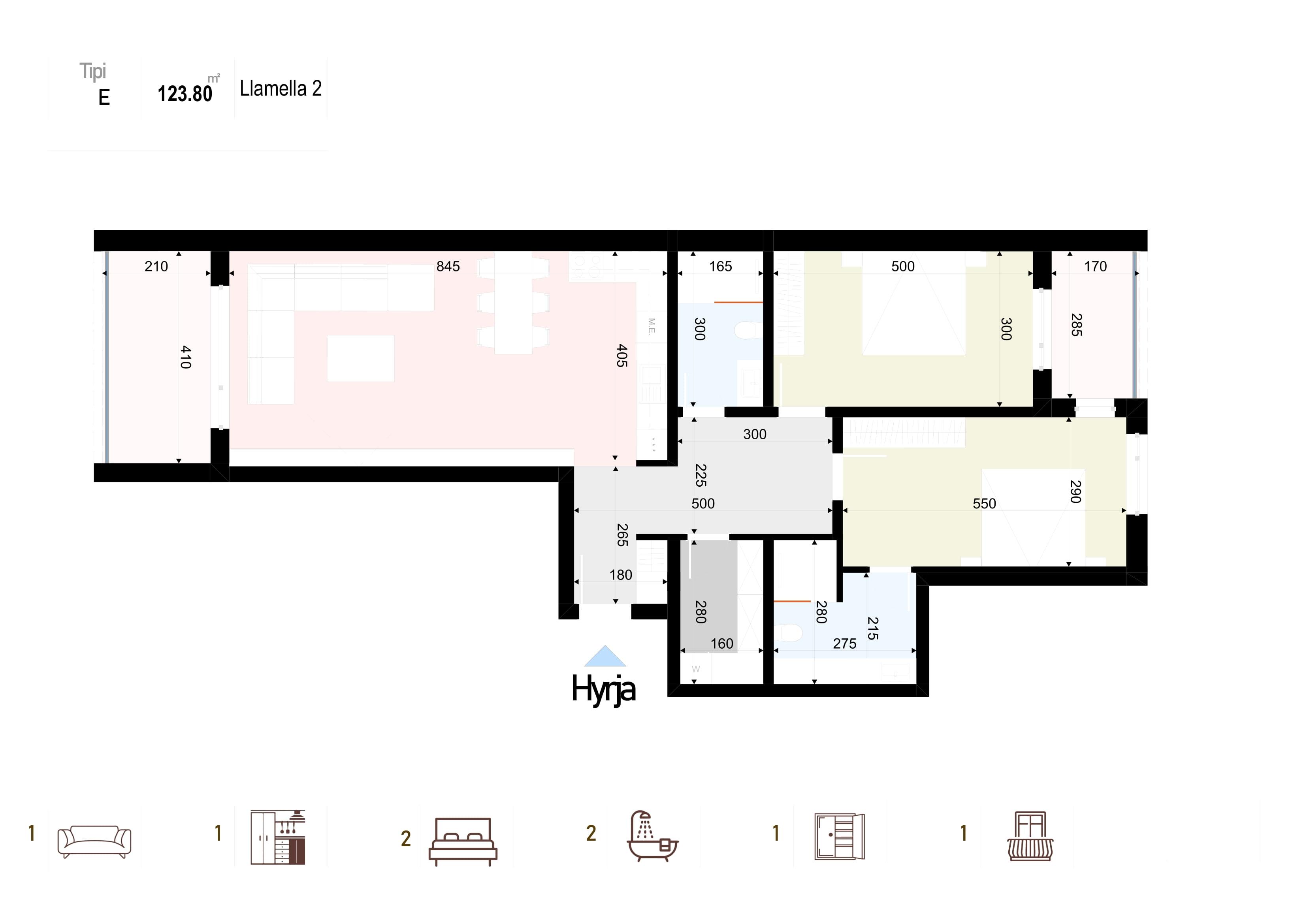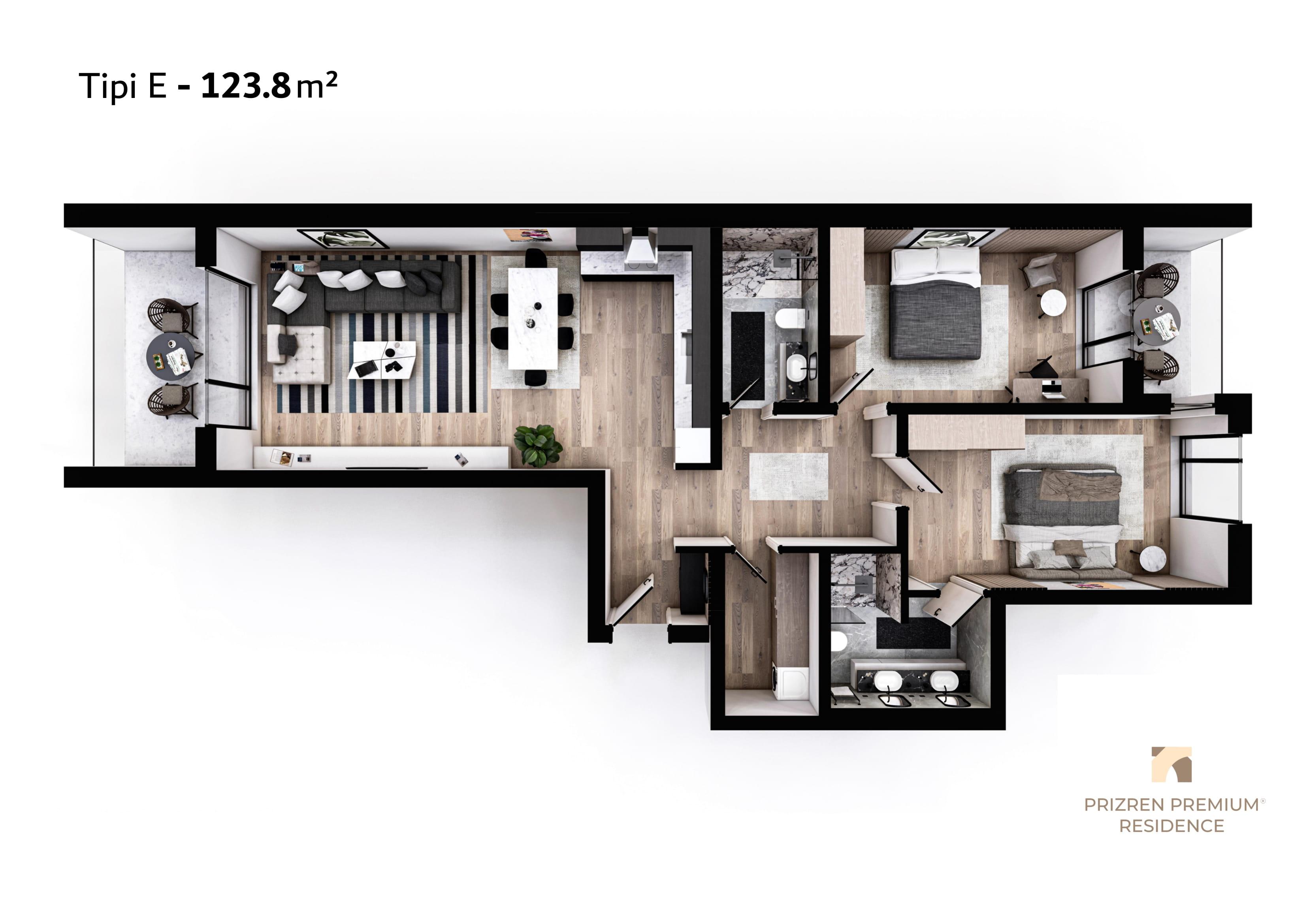 Banesë në shitje, Lamela 2, Tip E, 123.80 m2