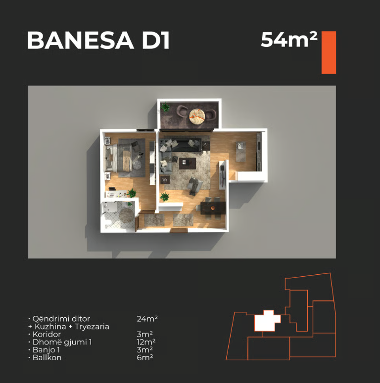Sipërfaqe totale: 54 m²