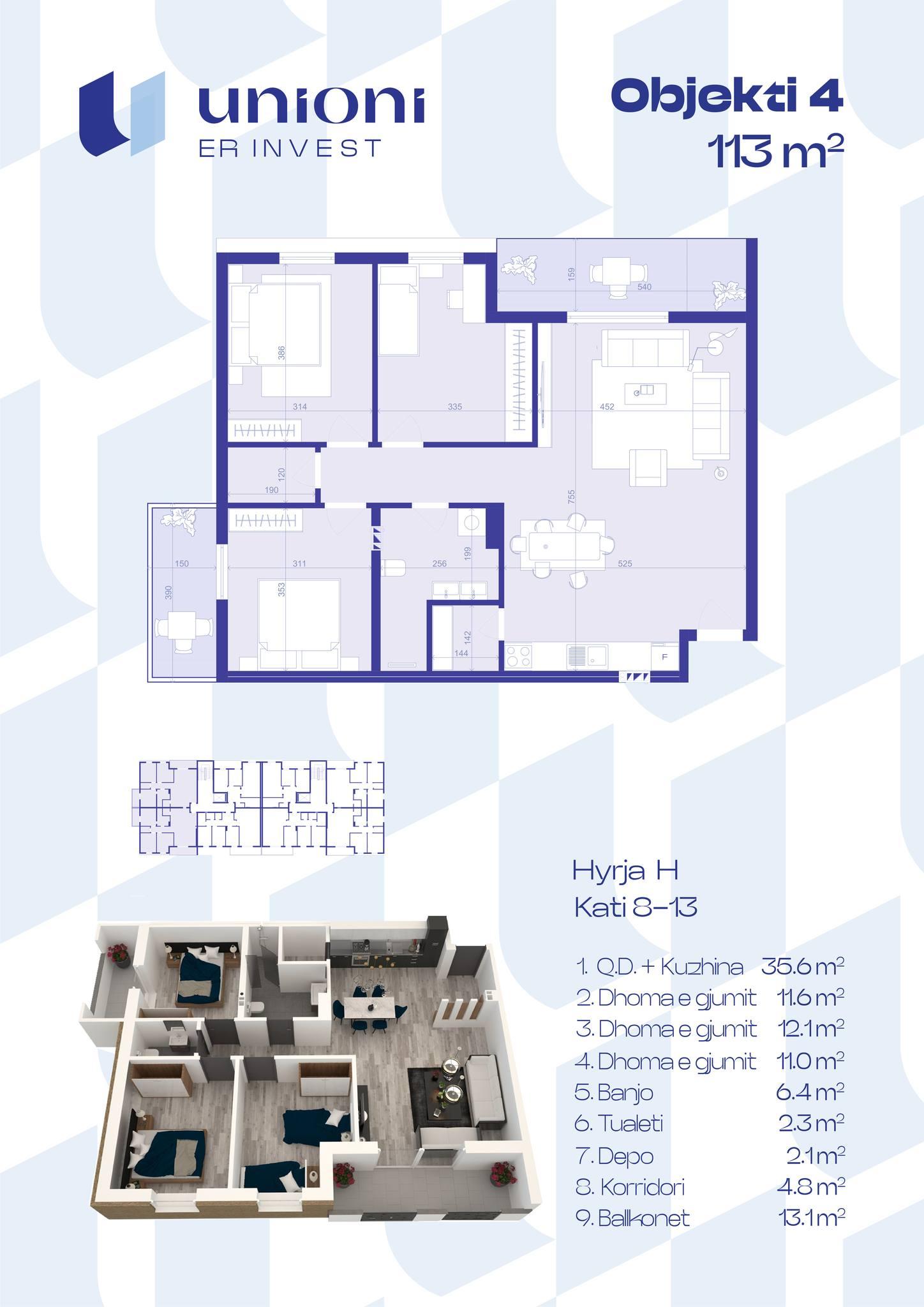 Kompleksi Unioni ofron banesa të dizajnuara me përkushtim, funksionalitet dhe estetikë bashkëkohore. Një mundësi e shkëlqyer për ata që kërkojnë një vendbanim të rehatshëm, të sigurt dhe të ndërtuar me standarde të larta.