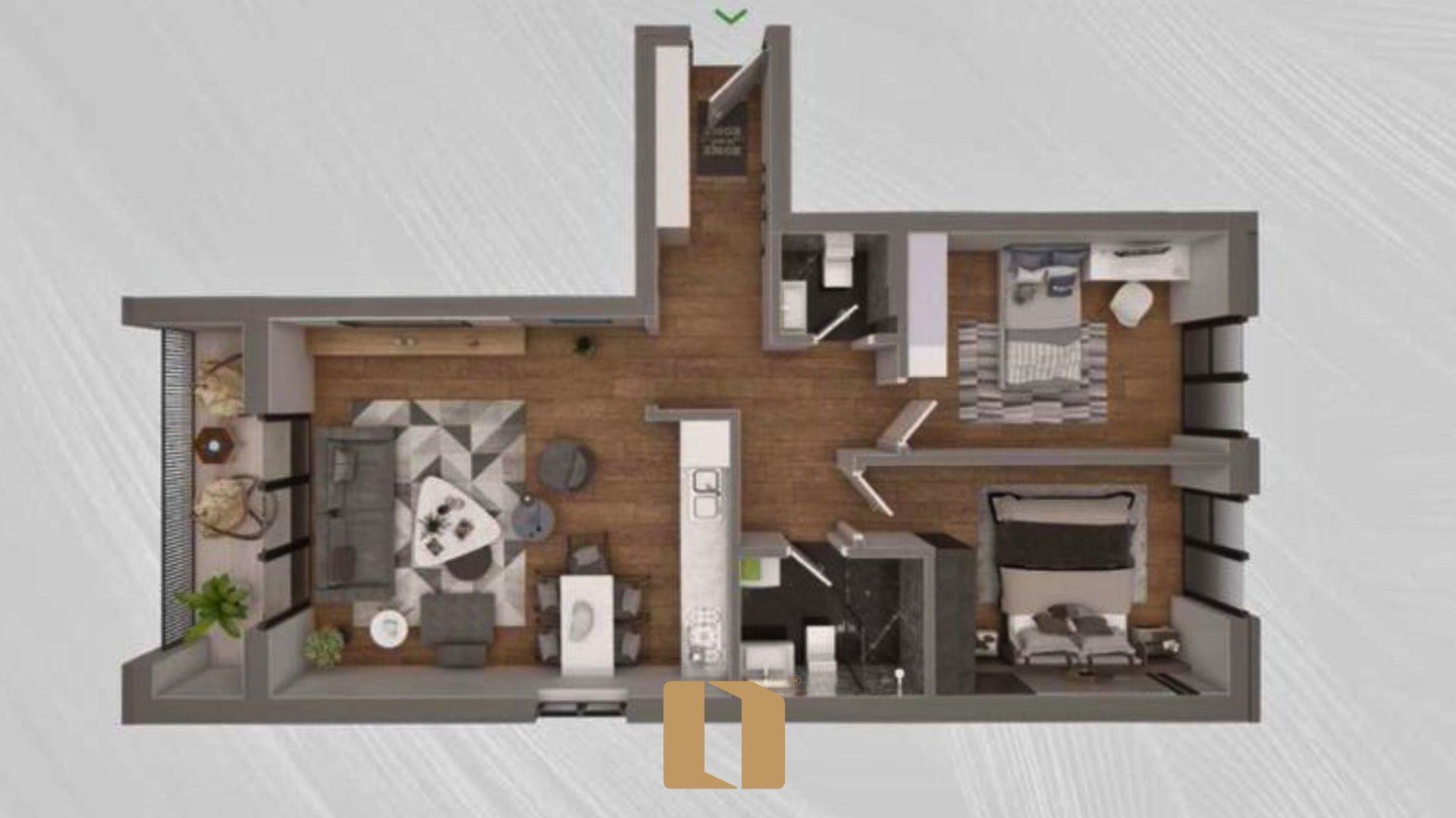 • Sipërfaqe: 89m² – e organizuar në mënyrë funksionale dhe moderne.