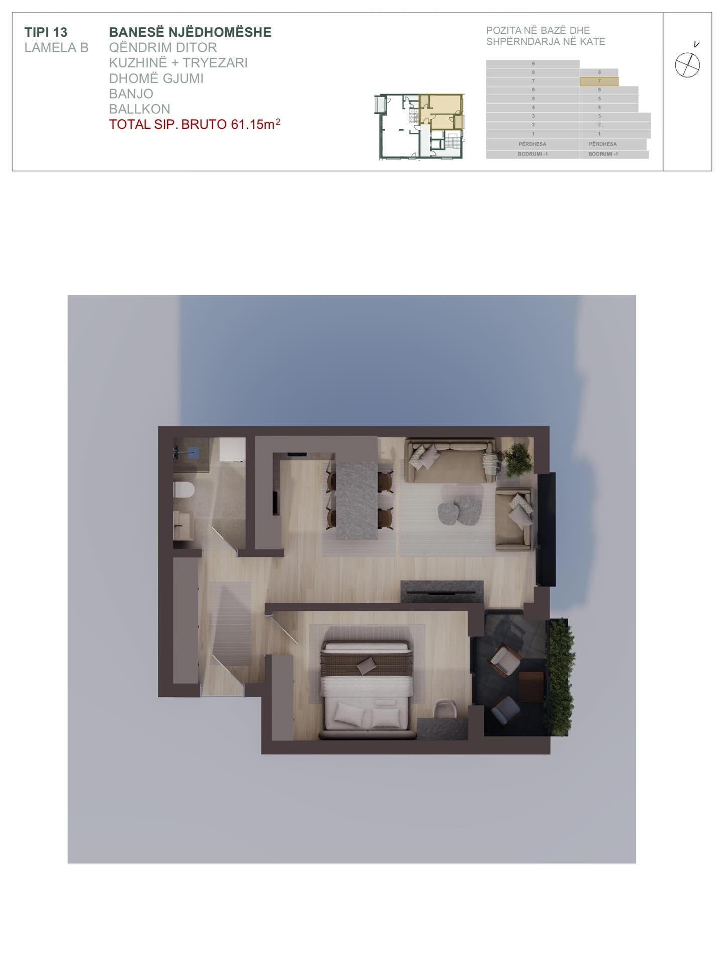 BESOR APARTEMENTS, Banese ne shitje Tip 13, Lamela B, 61.15m2
