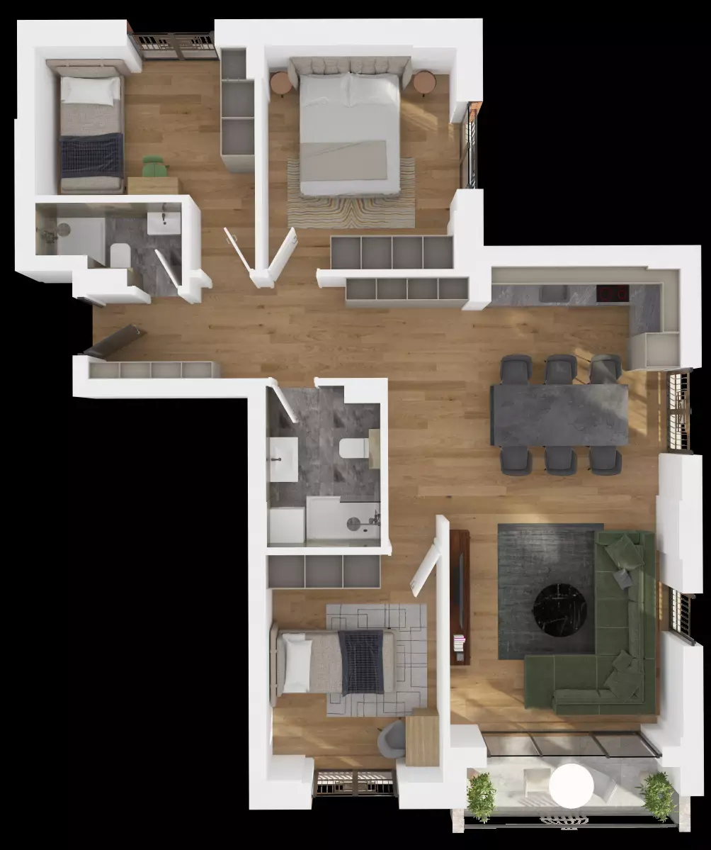 Kjo banesë është e duhura për familje që dëshirojnë dhoma të mjaftueshme, qëndrim ditor dhe kuzhinë të bukur, banjo, WC, koridor dhe ballkon. Kualiteti dhe hapësira nuk mungojnë në asnjë kënd të banesës.