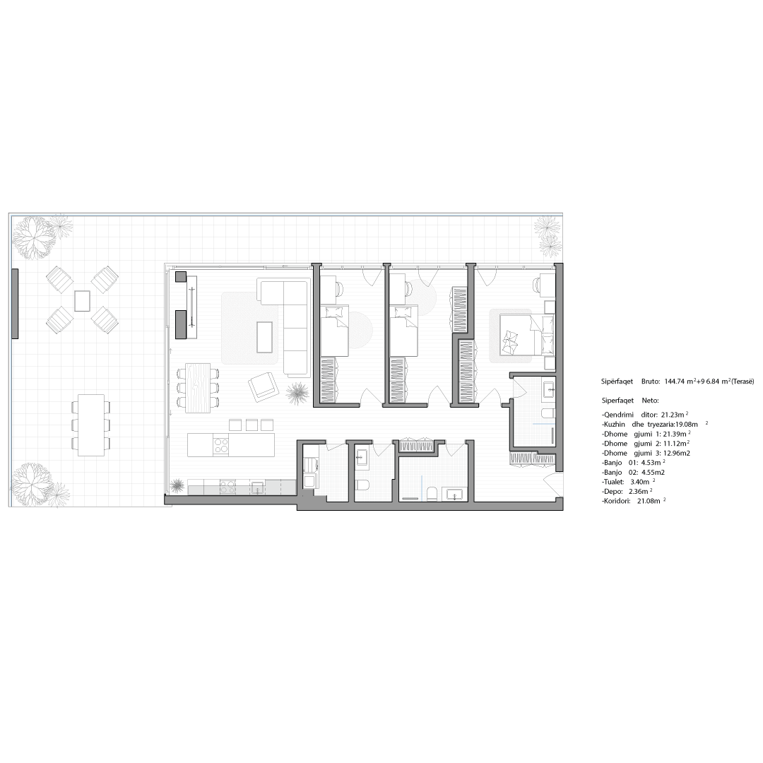 Çdo apartament është projektuar me kujdes për të ofruar rehati, funksionalitet dhe standard të lartë jetese.