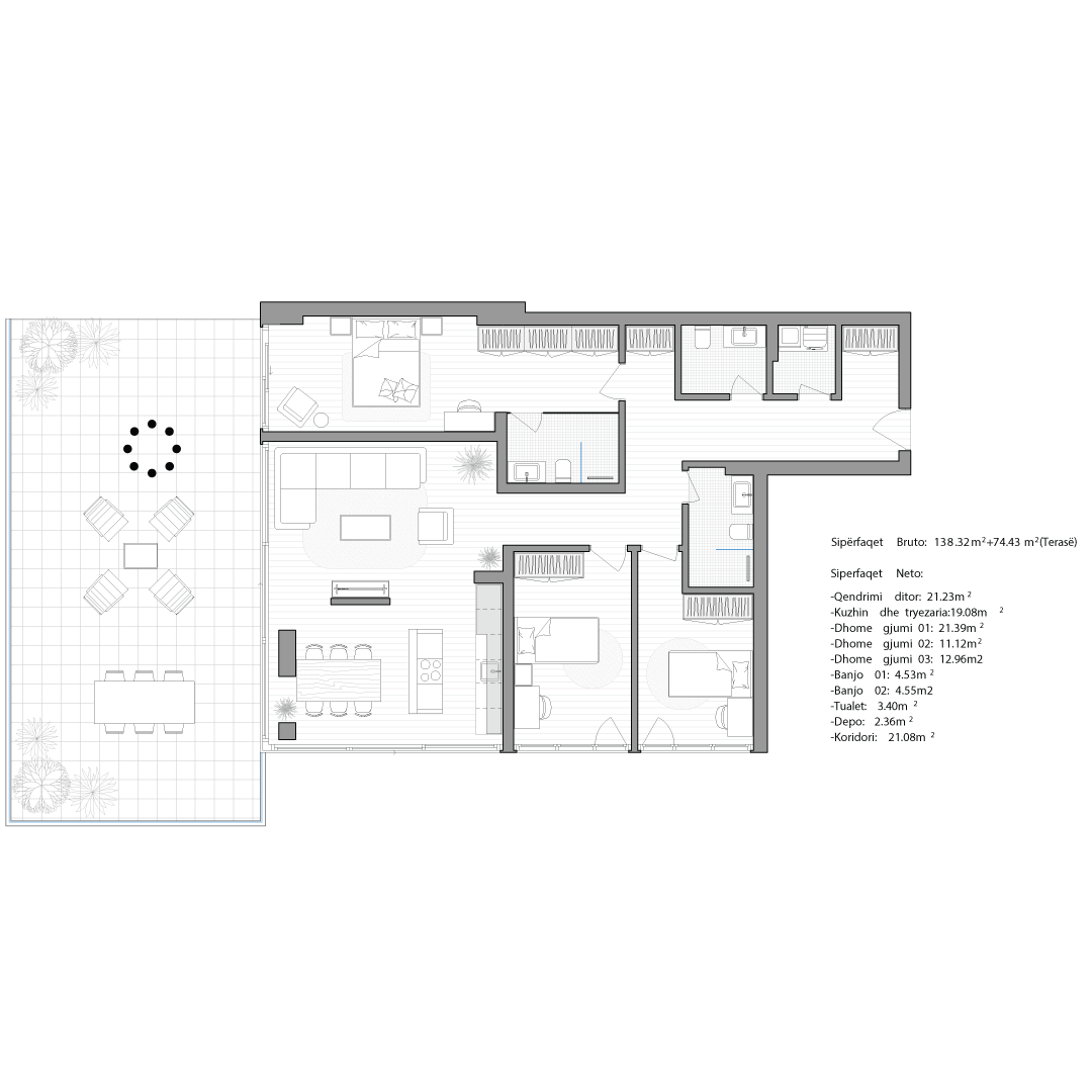 Çdo apartament është projektuar me kujdes për të ofruar rehati, funksionalitet dhe standard të lartë jetese.