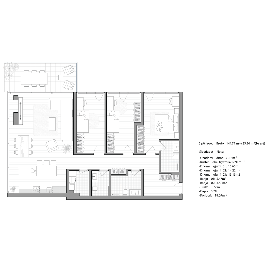 Çdo apartament është projektuar me kujdes për të ofruar rehati, funksionalitet dhe standard të lartë jetese.
