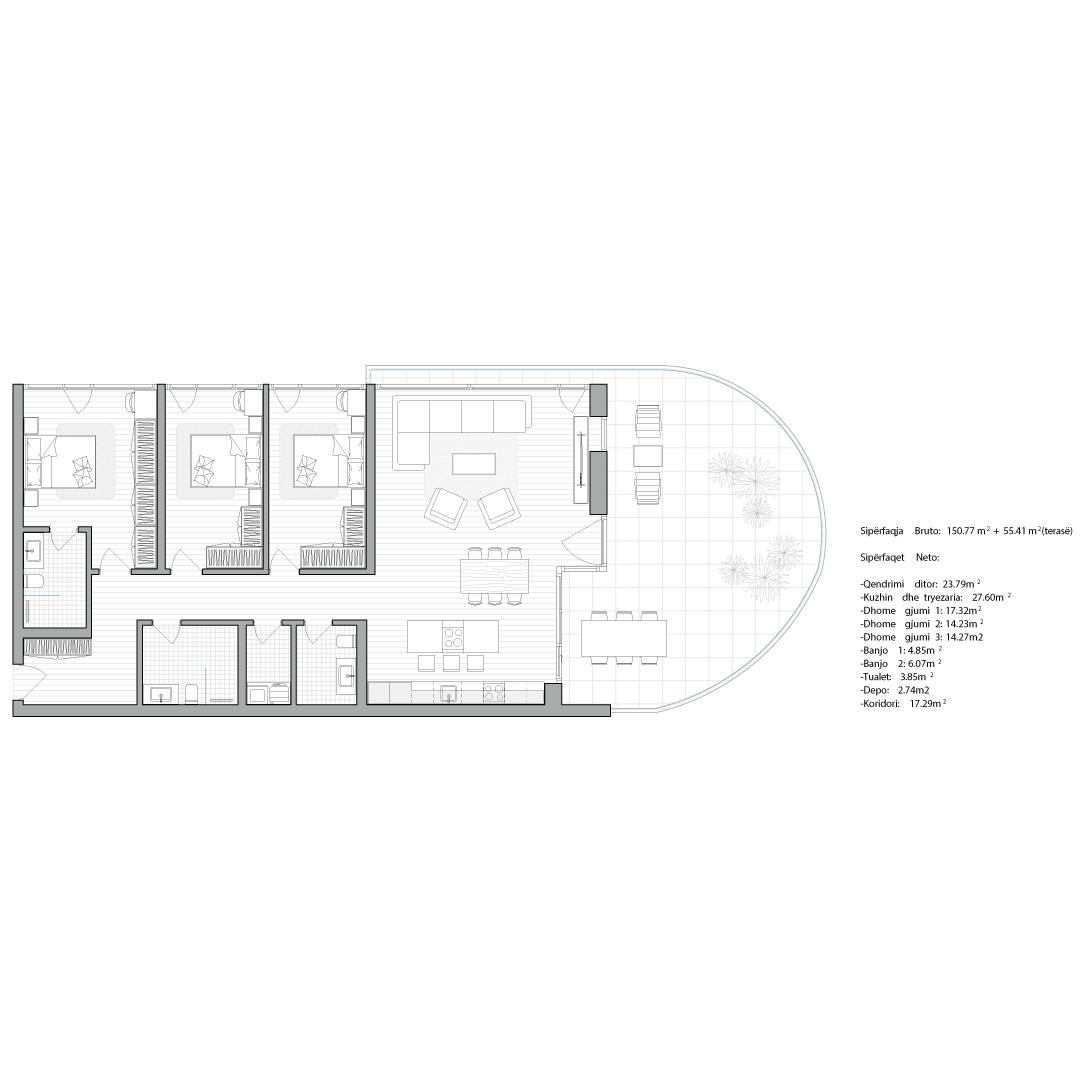 Çdo apartament është projektuar me kujdes për të ofruar rehati, funksionalitet dhe standard të lartë jetese.
