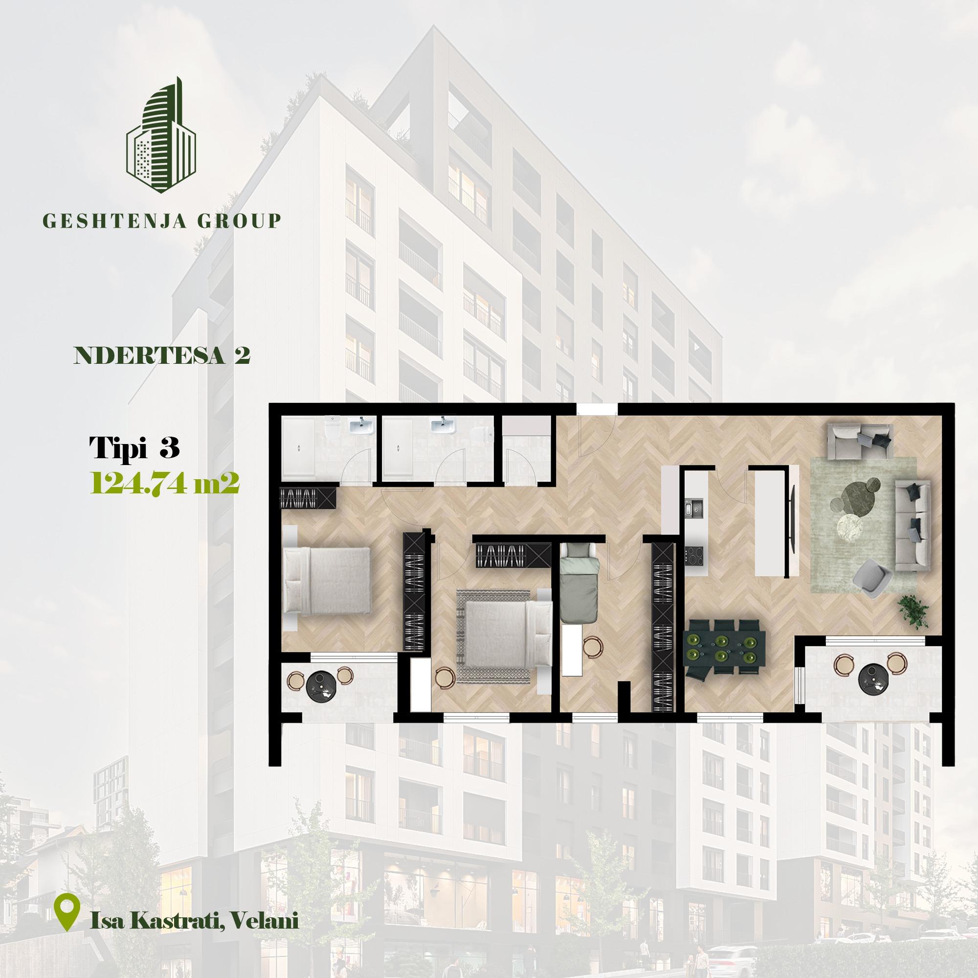 KOMPLEKSI GËSHTENJA BANESA TIP 3, 124.74 m2