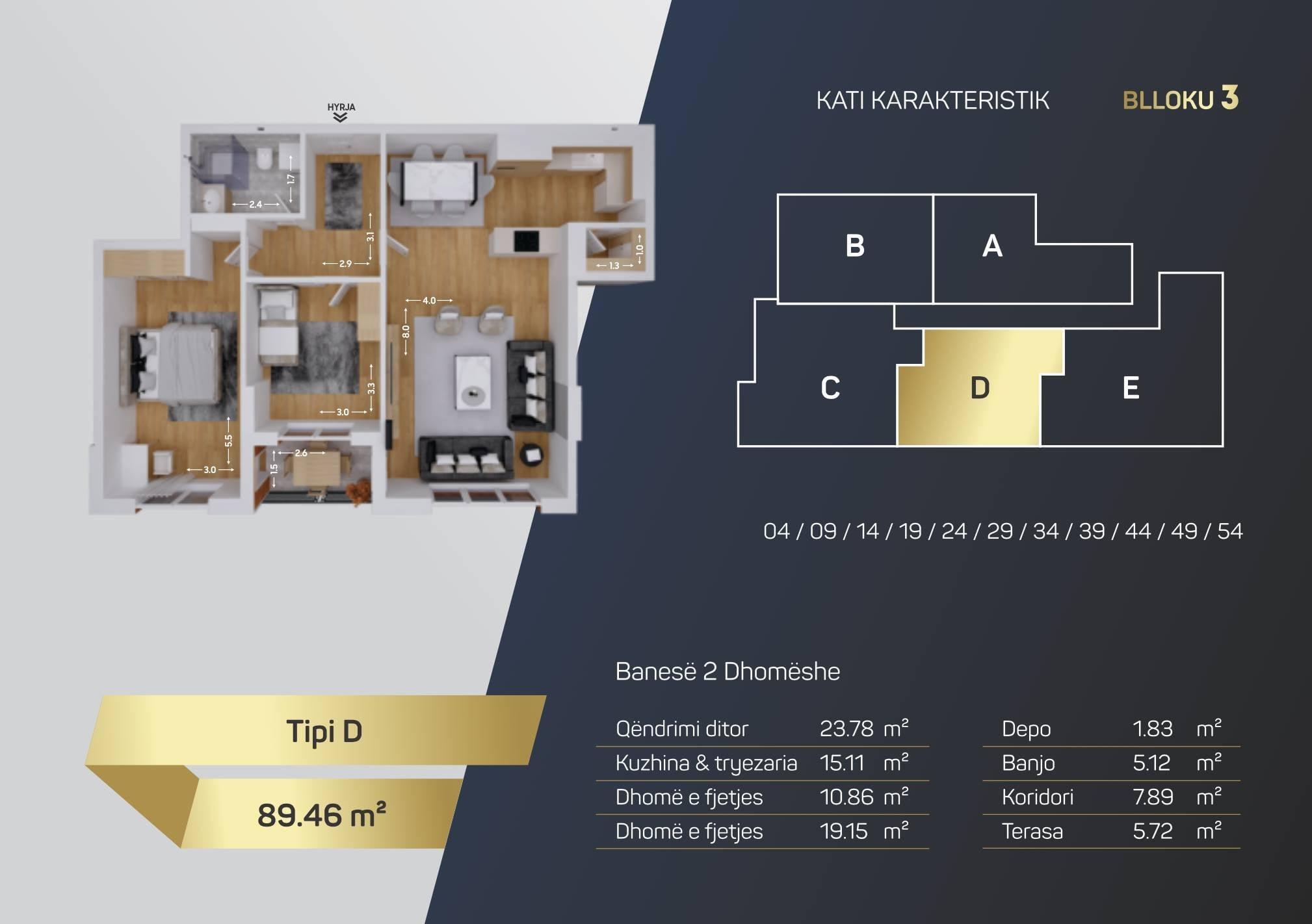 Kompleksi Royal Residence, shitet Banesa BLLOKU 3, TIP D, 89.46m2