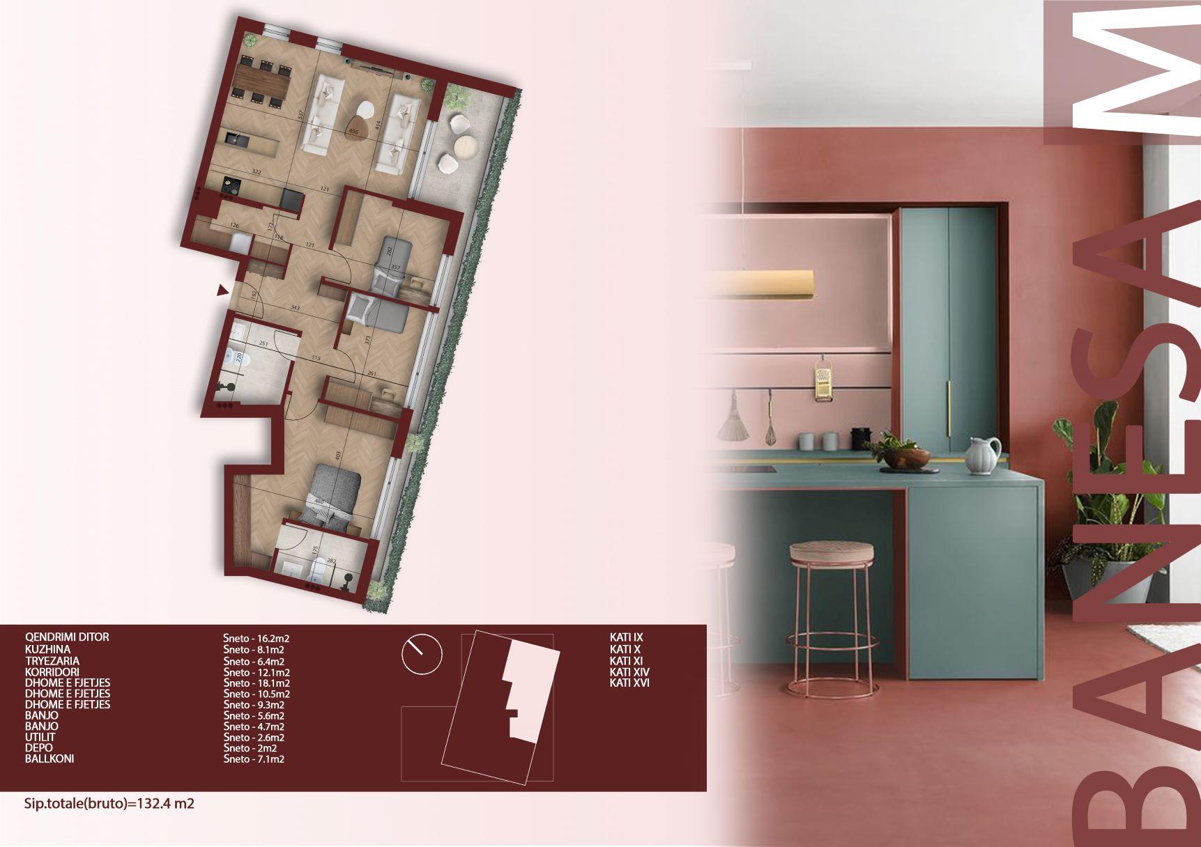 Kulla Rozë, Banesë në shitje 132.4 m2