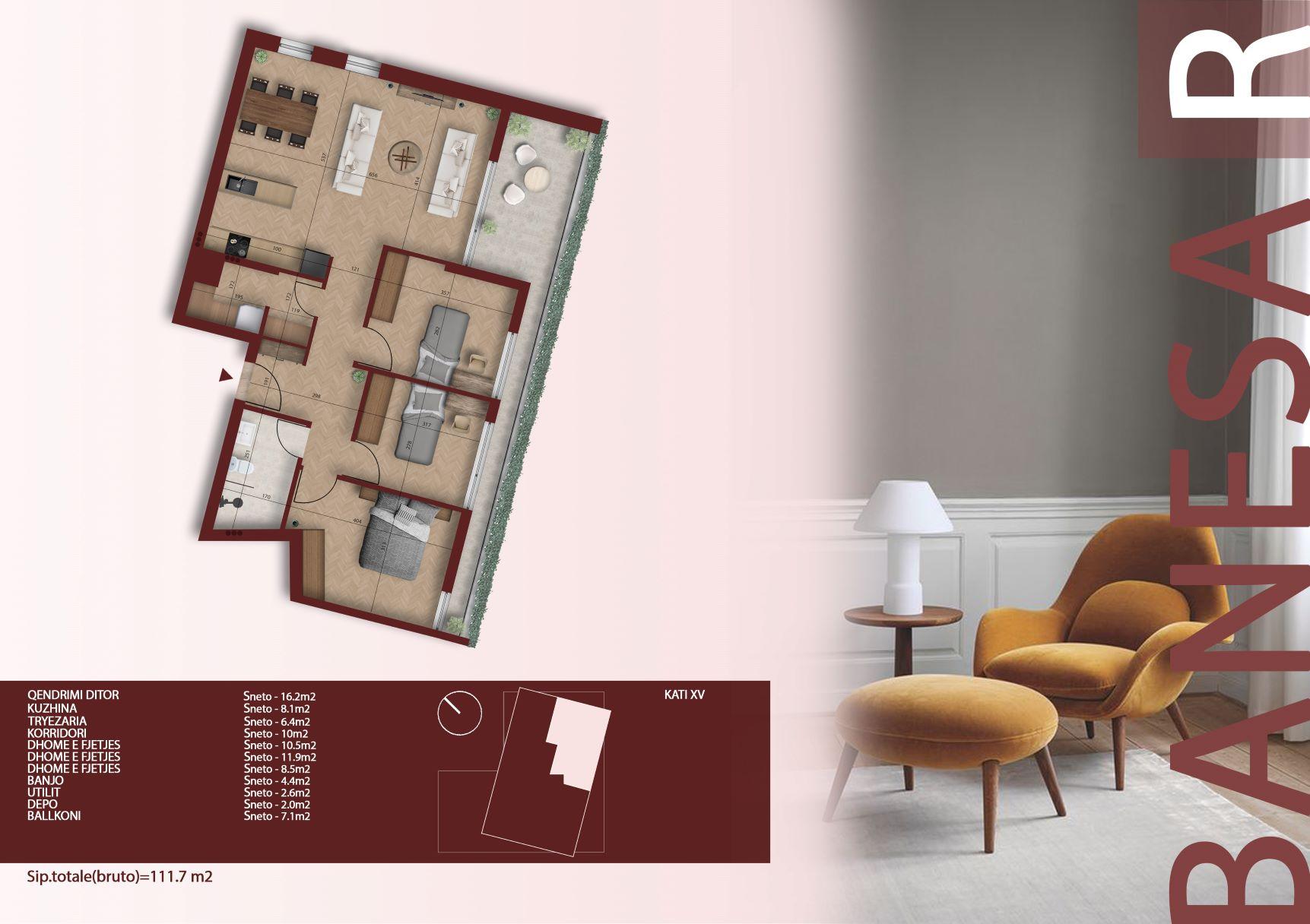 • Sipërfaqe totale bruto:      111.7 m²
