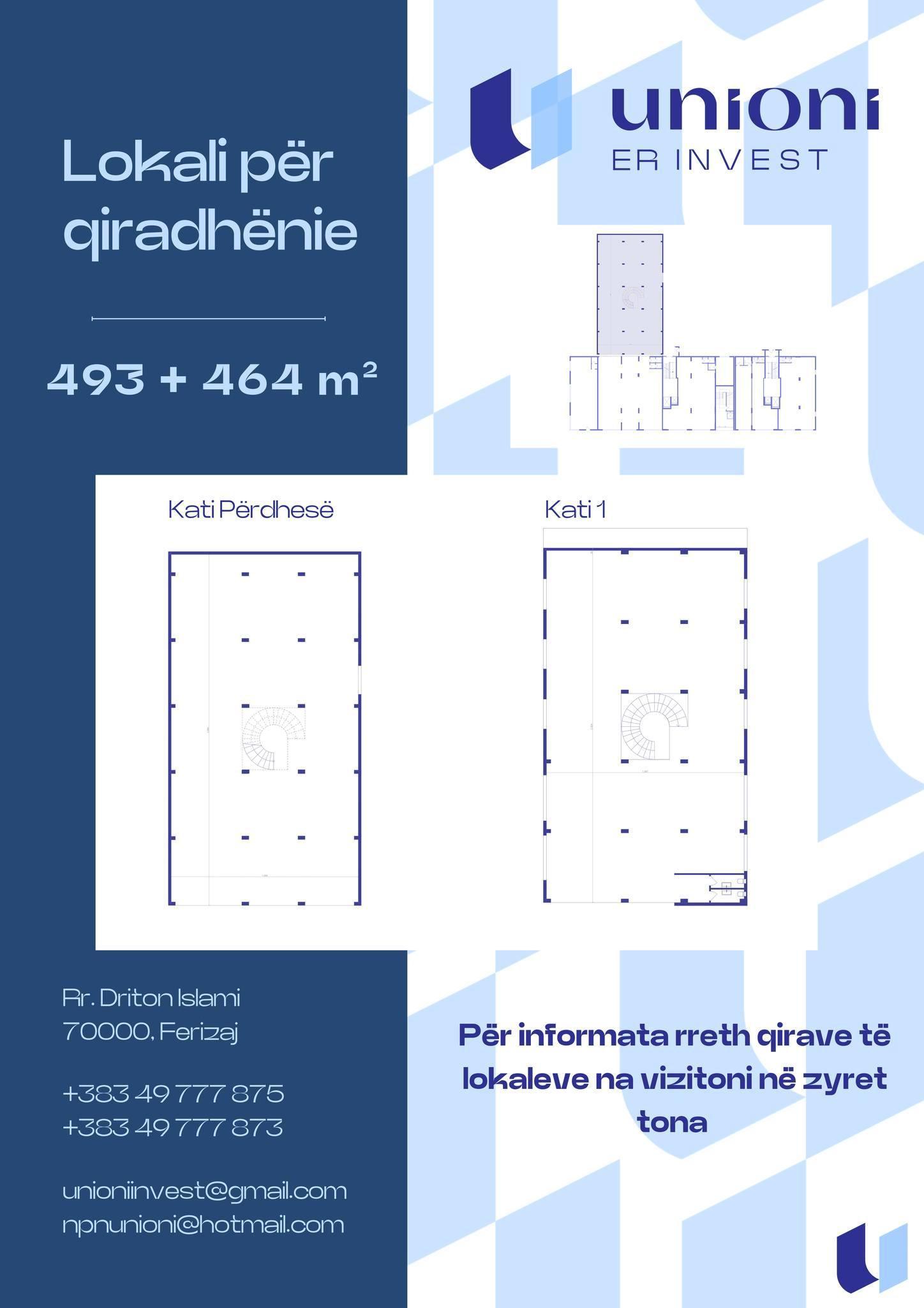 Në kompleksin Unioni Invest ofrojmë lokale bashkëkohore dhe fleksibile për qira, të përshtatshme për biznese të ndryshme si markete, banka, klinika, zyra apo showroome.