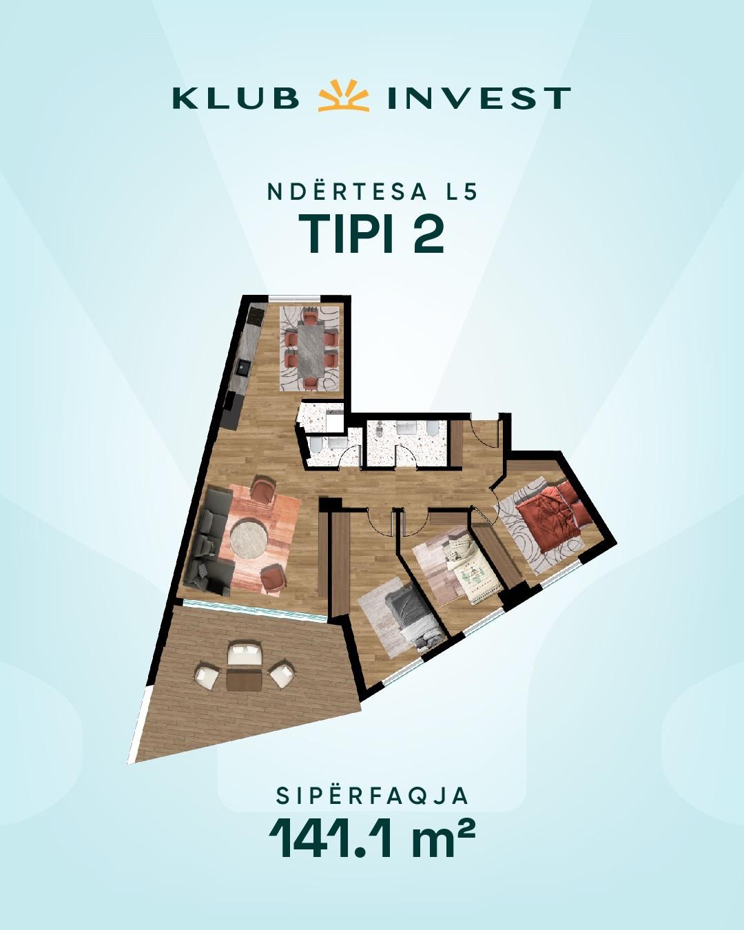 Ofrohet banesë për shitje, KLUB INVEST, Ndërtesa L5, Tip 02, 141.1m2