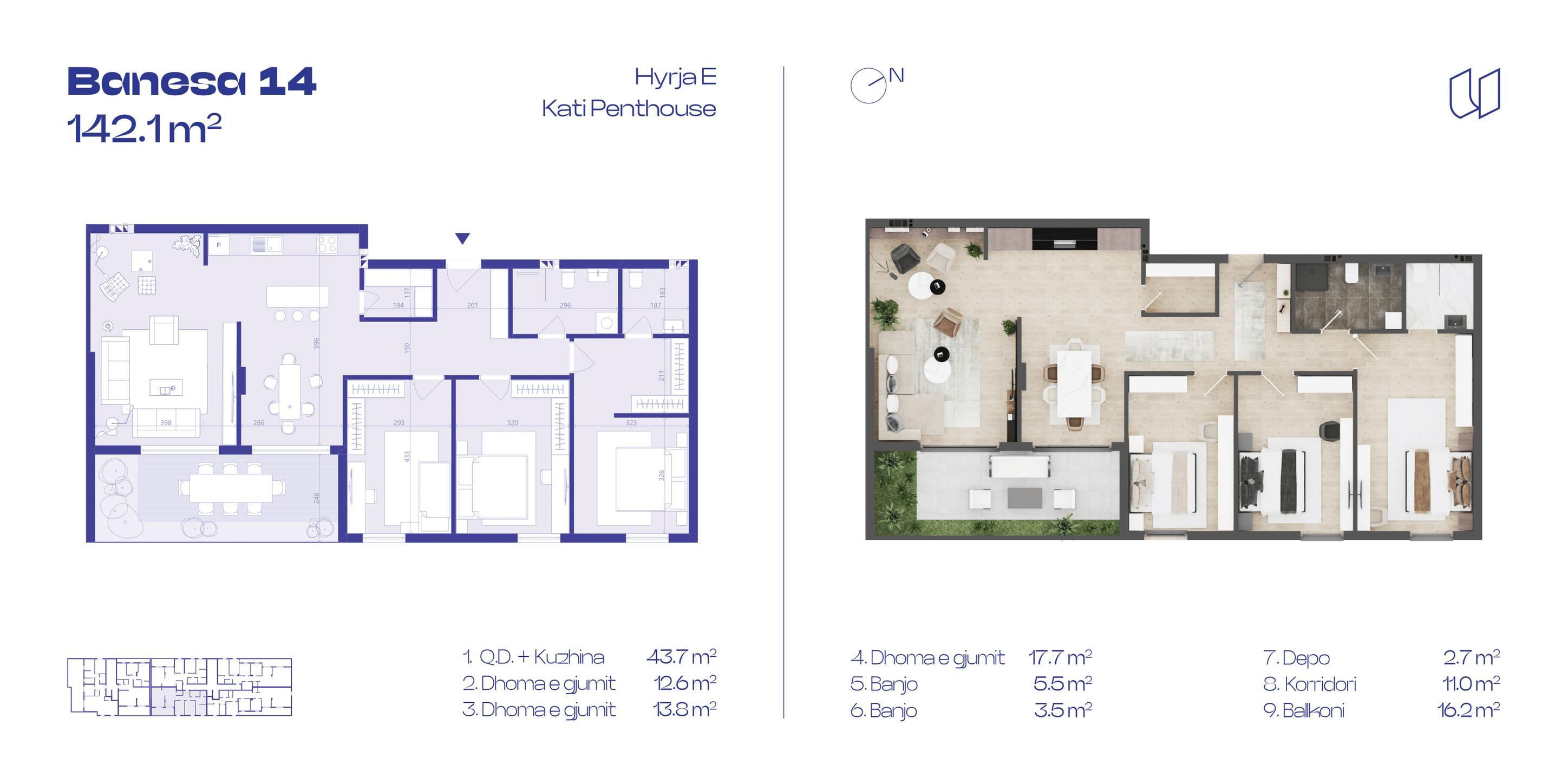 PENTHOUSE 14, Hyrja E, 142.1m2