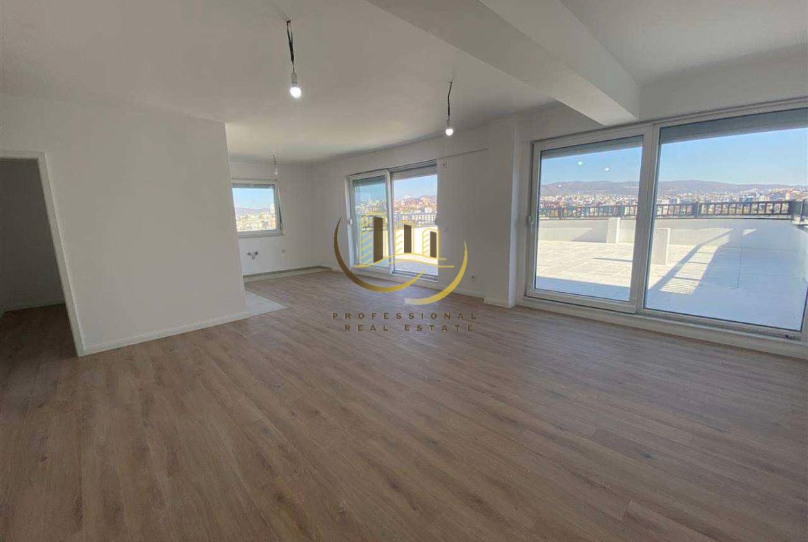 Banesë e pa mobiluar (përveç kuzhinës), me sipërfaqe prej 170 m2, në katin e 13-të me lift, me sistem të ngrohjes me rrymë dhe kushte shumë të mira.