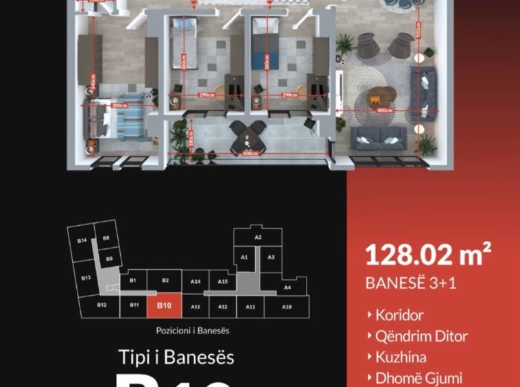 Banesa në shitje në rrugën Reçakut, te Macropus, në ndërtim të ri. 128,02 m²