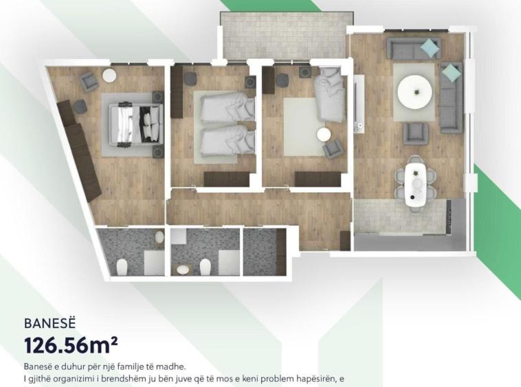 • B4 - 126.56 m² pamja nga sheshi i kompleksit