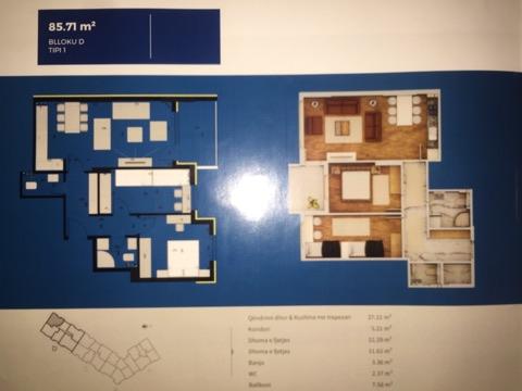 Banesë e re në lagjen Prishtina e re (Standart Plusi), me sipërfaqe 85.71m2, kati i 6-të. Çmimi: 750€/Për M2. I Negocjushem.