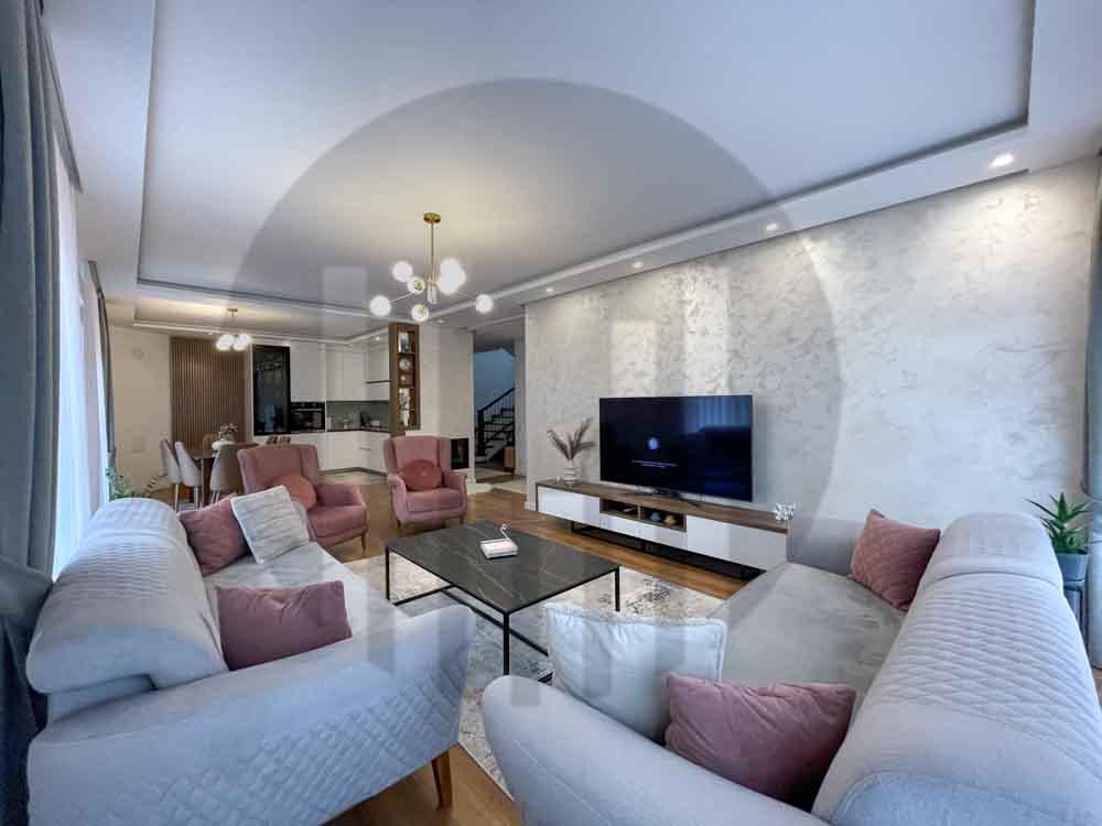 Shtëpia ndodhet në një zonë të favorshme për jetesë, afër shërbimeve dhe institucioneve të rëndësishme. 200m2 sipërfaqe banimi, 6 ari truall
