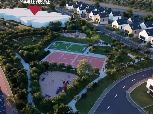 - Hapësira rekreacioni, shtigje ecjeje, institucion parashkollor dhe shkollë e re në ndërtim