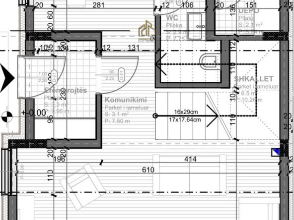 - Kati i 1-rë: Qëndrim ditor dhe kuzhinë me hapësirë prej 67.8m², depo dhe banjo