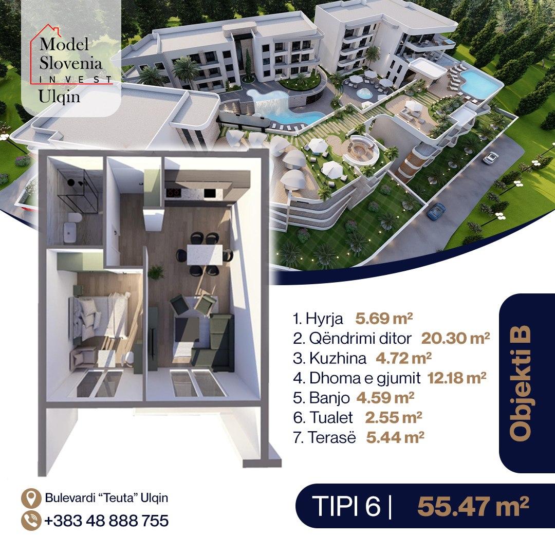 SUNRISE Banesë në qendër ULQIN Tip 6 Ob B 55.47m2
