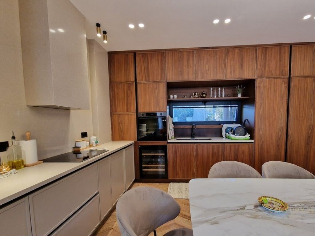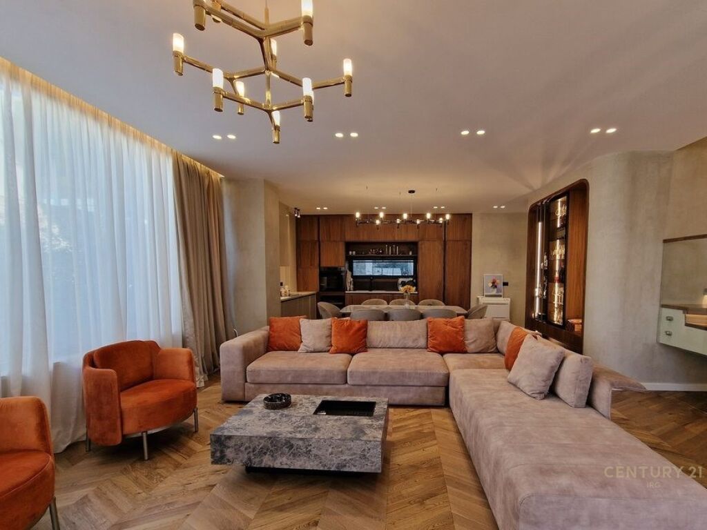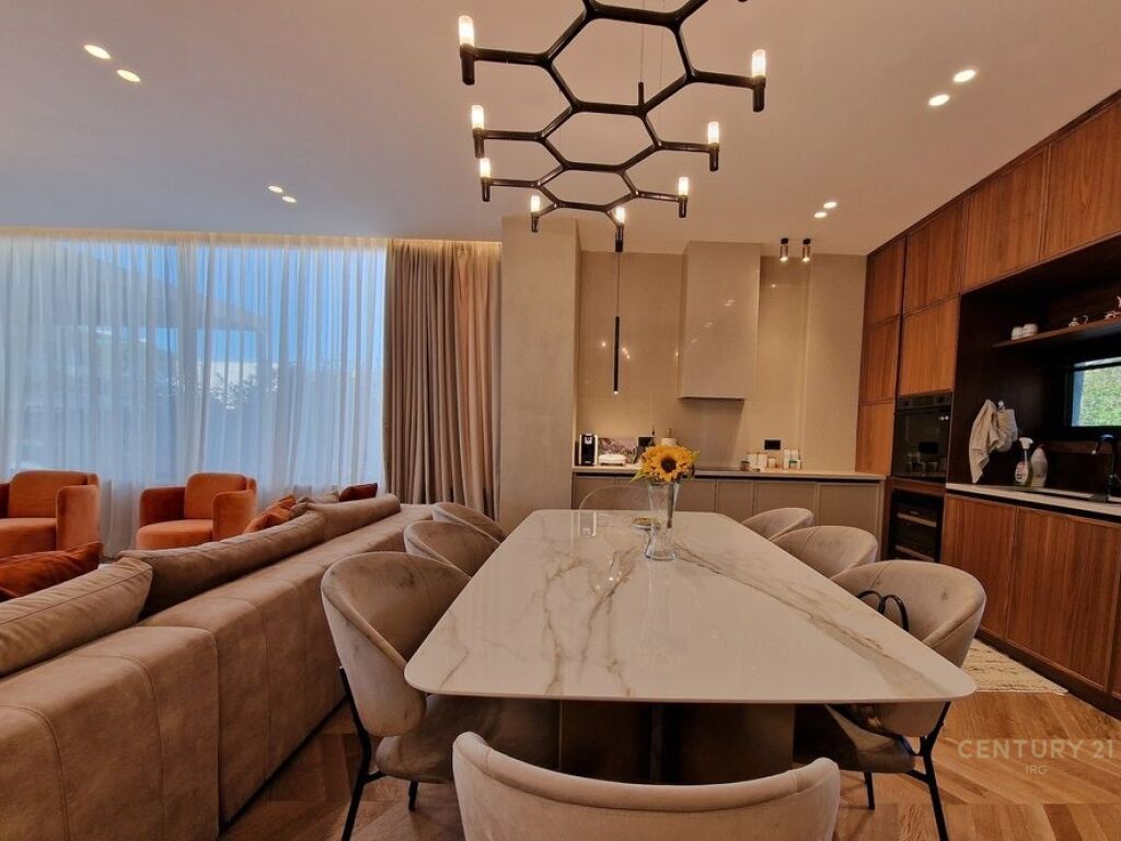• Dhoma ndenjeje e ndriçuar natyralisht e lidhur me kuzhinë moderne