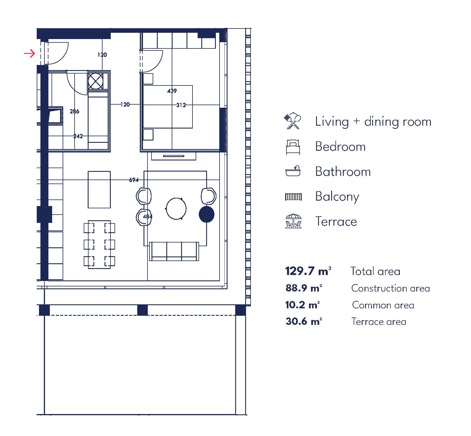 • Sipërfaqe totale: 129.7 m²